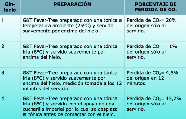 Cuarta: Si un cliente consume su G&T en un tiempo estándar, y sin removerlo demasiado con su mano, éste apenas perderá CO2.