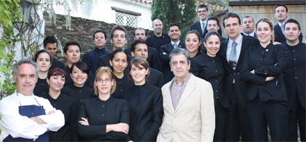 Ferran Adrià y Juli Soler, hace dos semanas en elBulli, junto a las 23 personas que forman el equipo de sala del restaurante.